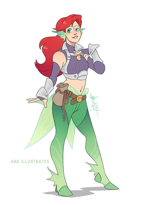@Nawniii Here’s my Oc Finn, I imagine she’s like a Triton from Dnd in her appearance. Kinda like this drawing from the YouTuber @AlexBDent did of Ariel in Dnd.