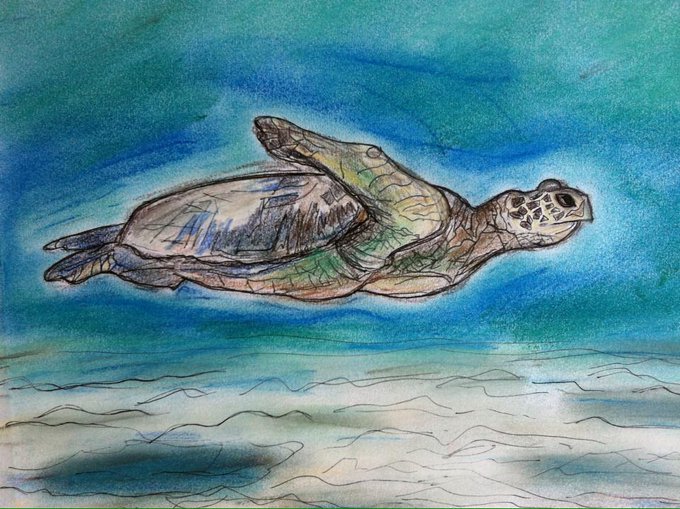 My #mixedmedia #drawing #turtle #honu #hawaii #honolulu #art #artist #endangered #animals #Boston #janelhouton