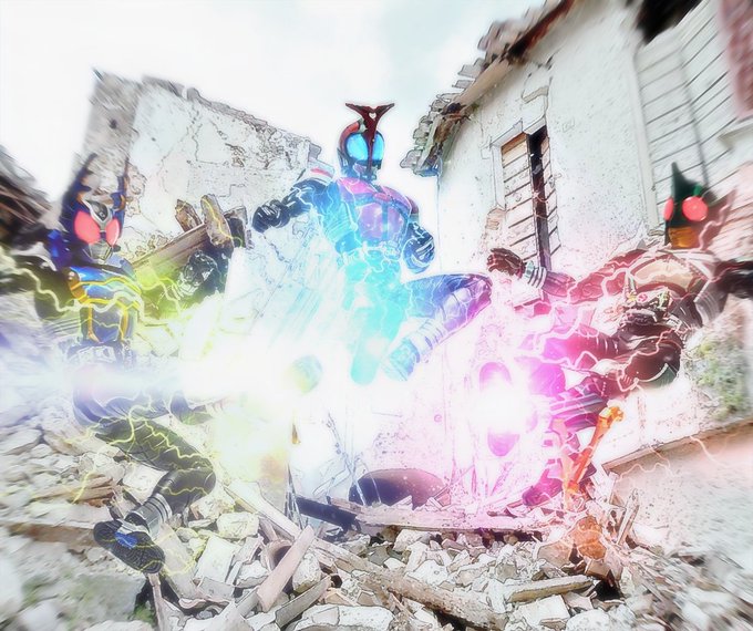 #ライダーズフォト写真展 お題『こだわりの編集』 picsartでのシャボンと炎、本のエフェクト ibispaintでの複眼発光 作る上でのこだわりは、劇中のイメージに合わせたエフェクトをつけるが、被写体がぼやけるような付け方はせず、しっかりと見えるようには心掛けてます。