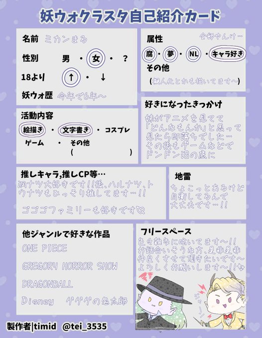 #妖ウォクラスタ自己紹介カード