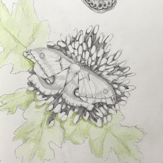Moth on a mum! Graphite and a hint of color pencil. #artistsontwitter #sketchbook #moth #chrysanthemum