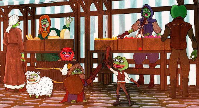 Pepe's Market https://t.co/G9w1YVsFtE #FrogFam #EthereumMerge #DigitalArtist #pepethefrog #Frog #medieval #TheRingsOfPower #hedz