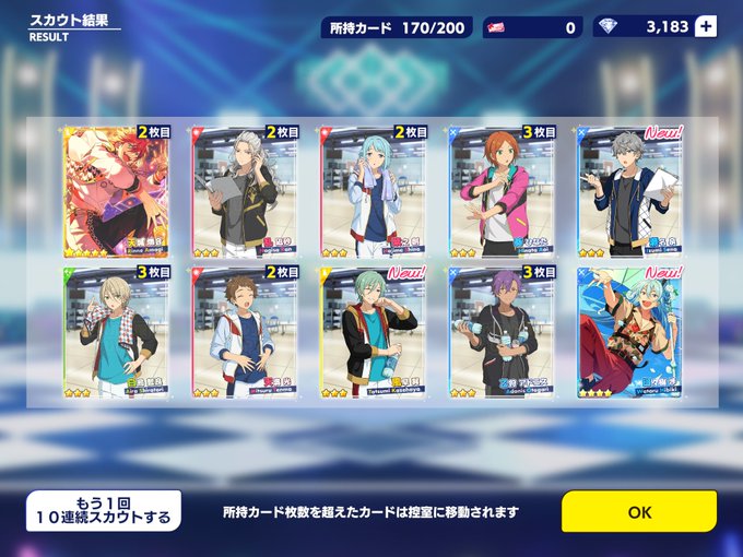 Basicの方の7周年の無料10連ガチャを1回引いた結果星5が2枚と星4が4枚ヽ(。・ω・。)ノ