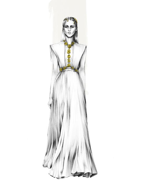 Beautiful Illustration by Ewelina @ewelinadmk featuring one of @MaisonValentino collection #Valentino #elegance #lfw