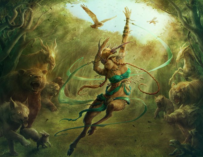 Maskwood Nexus, my new card done for MTG Kaldheim. This is the mother tree of all shapeshifters in Kaldheim, from which their masks are created, which hides amid the twisting forests and foggy rivers of their mysterious realm, Littjara.