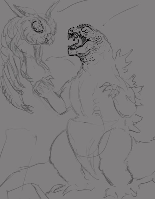 Galactic Godzilla vs Eldritch Hedorah, this one took awhile mostly because they are my own designs of the characters, Hedorah being more from another dimension coming into ours and having an influence on the large amount of pollution in the world, Godzilla is a different case…