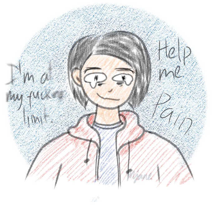 Okay so I've been trying to finish my wips but I just can't. So have a doodle (again) of me suffering :').