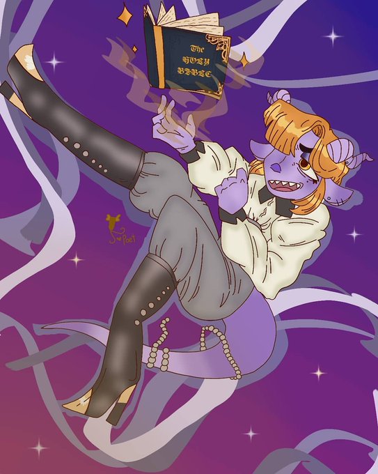 Fan art I did of #angeldust from #hazbinhotel he is my absolute FAVORITE character and I love him so much- I'm quite happy with how the piece turned! the references were drawn by @nadairead18 he's one of my favorite artist I love their work! 💕