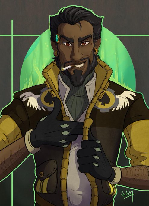 I was so excited to get to draw Dremik. He's all the shapes I like drawing & considering I used to stand right next to this guy every Reset it felt nice to see his face on my screen <3