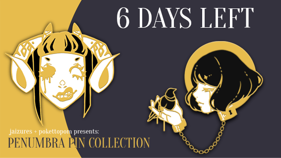🌘 just 4 days left to back our collection of original enamel pins ! you get tons of free goodies too with the purchase of two or more pins so please check it out ! 💛🖤