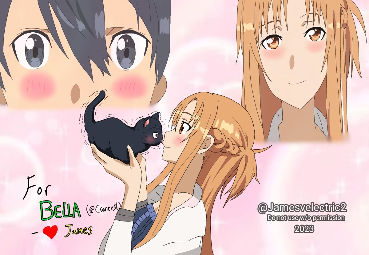 Made this wholesome special art as a gift to my beloving Queen @cranex56 for its birthday, hope you like this, as we love KiriAsu and kitties. 🥰🥰😻😻 Happy Birthday Bella! 🥳🥳💛💚