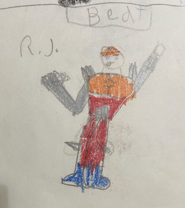 1992 Jamps couldn't defeat Darkman IV and I was told that I NEED to get Beat to BEAT him! So In my mind Beat was this ultra-powerful robot guy. It wasn't until years later I found out Beat was a bird. Anyway, it looks like Kid Jamps drew something in Beat's hand so... microphone?