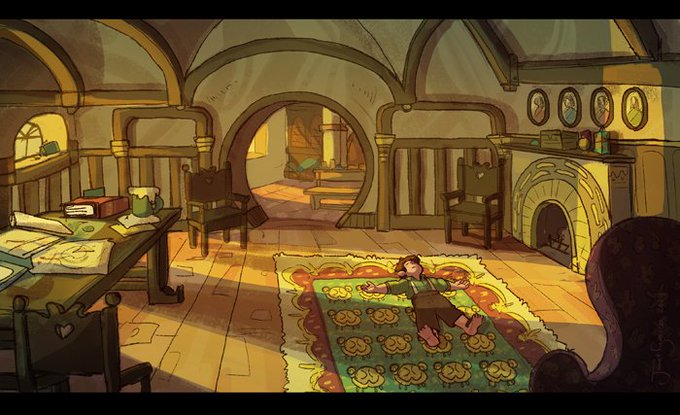 At school, I've been drawing these landscape drawings in a Steven universe style with the Hobbit as my subject. It was a strange process but the results look amazing. :D