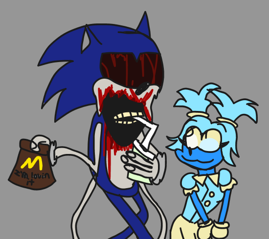 art of my #sonicexe Skinic. pretty much yeah, he goes into games and can do whatever he wants and breaks the rules. he'll spawn in front of you while you're running. also when he catches you, then he kills you by slamming you into the TV.