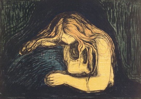"هي تمنح عقلي السكينة، عندما يثور ويأكل نفسهُ بنفسه". - painting by edvard munch