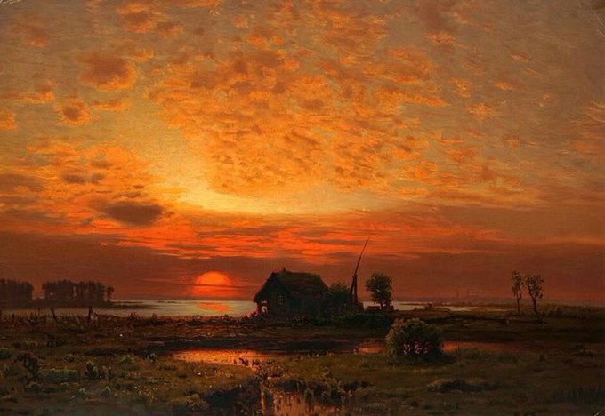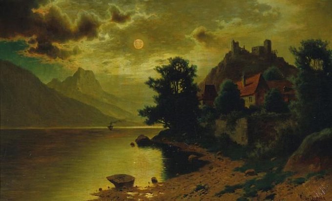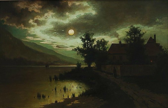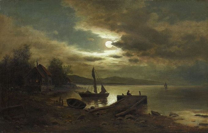 "جمالُ مشهد السُحب، وهي تحاول حجب ضوء القمر". - painting by peder balke