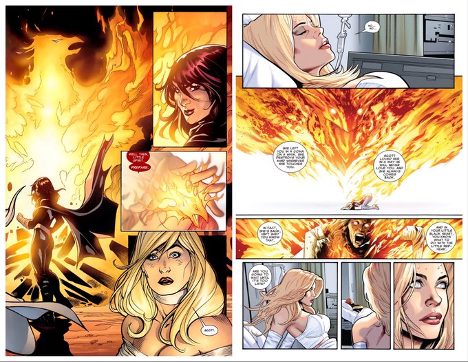 @StevenOfWonder @StevenofWonder Jean's Phoenix mythos is far more vast, intricate, and mysterious than any other avatar's. She foretold AvX and Hope Summers' coming, prevented Scott from entering the White Hot Room and convinced him to release the Phoenix fragments so Hope could manifest it. 3/