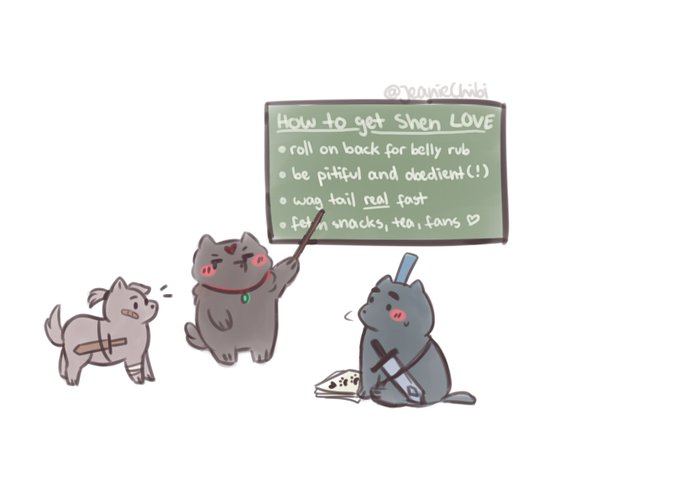 ...anyways :'D a continuation of the last Bing and Yue Qi puppy doodle - a guest disciple appears! And some more! ...where did all these chonks come from?
