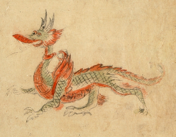 One exception is the zoomorphic representation of Mercury as a dragon-like figure. Described as a "black snake with four legs, eating a crab" 形如黑蛇有四足而食蟹.