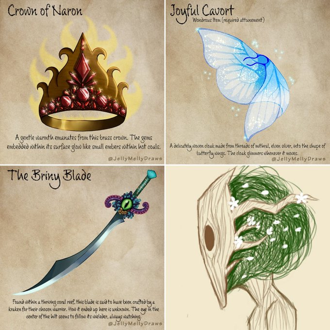 @nonagondice Hello hello, I'm Mel and I like to draw! Character art, magical items, twitch graphics, and even merch art! Every Saturday morning at 9am EST I stream my drawing process on https://t.co/3pObKZTKf2