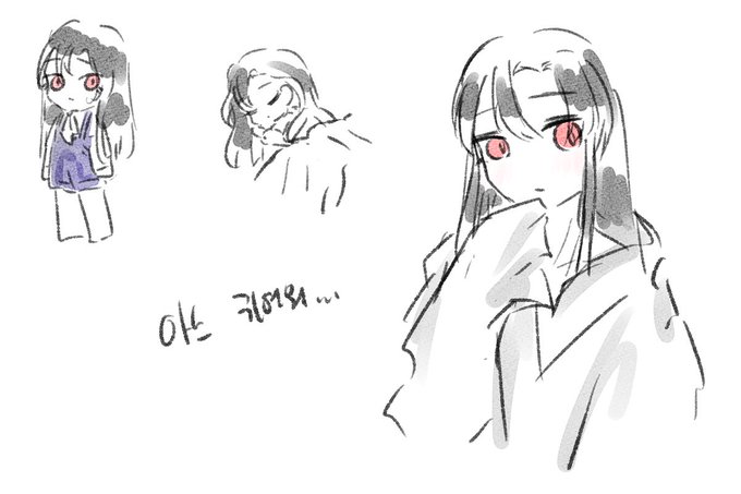 오랜만에 엘님…. 하도 안 그렸었다고 엘님 앞머리 잡는데 시간 좀 걸림……