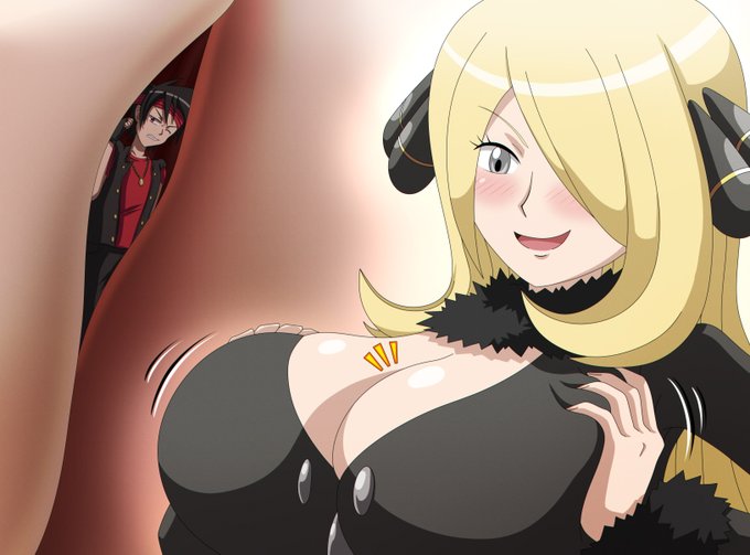 Cynthia was lucky enough to find a little trainer, and now she has a good time teasing him with her new move "Boobquake", super effective against tinies.