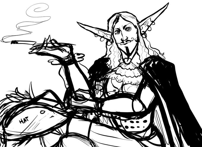 Some various doodles of Mercutio, a high elf arcane trickster rogue I played in DnD a while back! His hat is magic and grants him wishes due to obscene and wild circumstances. #originalcharacter