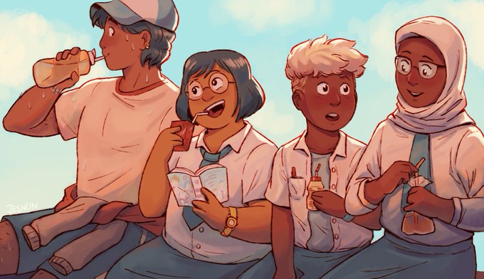#artistsontwitter Hi! We're JesnCin, twin comic artists currently working on a queer Indonesian graphic novel 🚀🪐