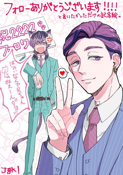 フォローしてくれてありがとうございますめっちゃ嬉しいですハピハピ最高大感謝記念絵(急募:タイトルセンス) ⇦ここまでがタイトル。 ※二枚目は文字なしすっきりVer.
