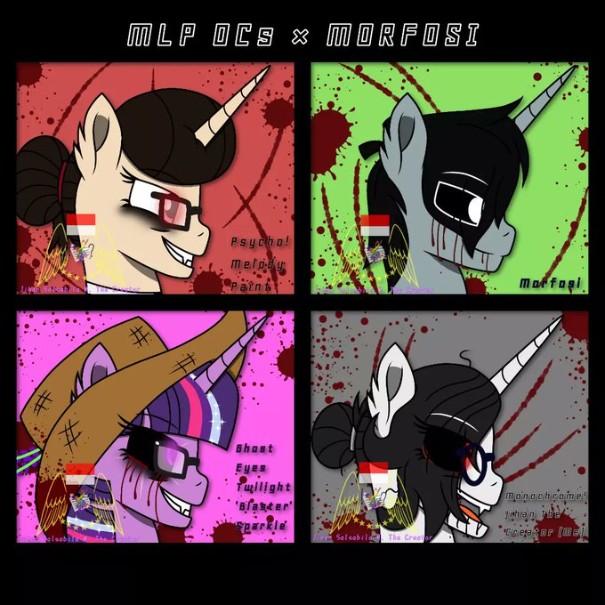 I drew them as ponies 'cause I'm trap in boredom and all I draw about MLP Ocs × #morfosi are my Au. But this time I draw their (other) dark side, even I added myself so everthing is complete right now ;3. At least I can feel happy now. ;)~☆