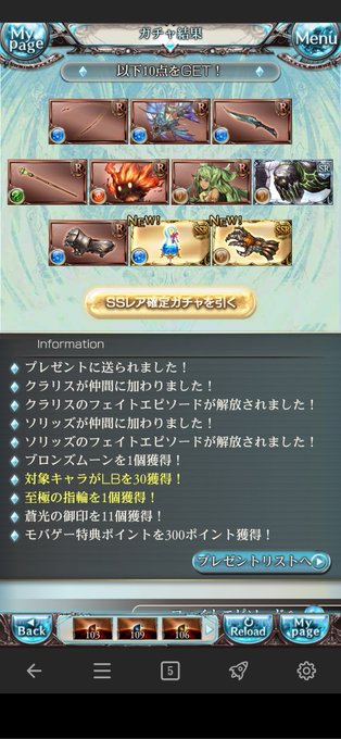 70連中新規が3人+石一つ。 出たばかりの新キャラは来なかったけど、石は入手できたので良し。 むしろ古戦場考えると石の方が当たりですらある