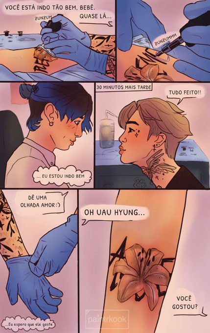 @paintrkook [PT-BR] Primeira tatuagem do Jungkook💕 O florista JK e o tatuador JM Pt. 2🌸