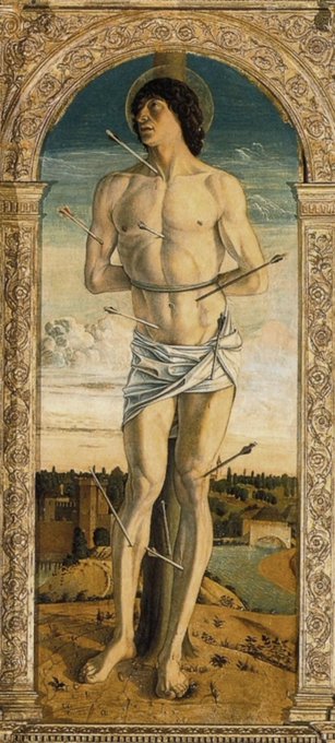 @jdmccafferty That’s an unusual depiction of poor St Sebastian “one of the A-List martyr saints”, according to @arranqh in this weeks Art lecture 😉. Poor fellow is usually standing upright, stuck full of arrows…@VeniceArtGuide #Bellini #Mantegna #Rubens
