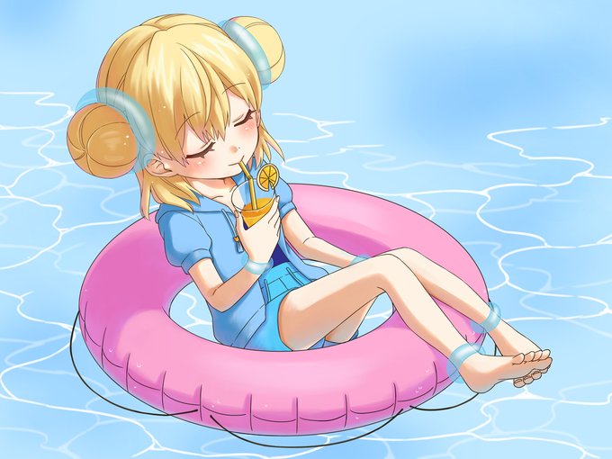 浮き輪の上でうたた寝べーるちゃん。季節完全に遅れて申し訳ない!w #おべるかき