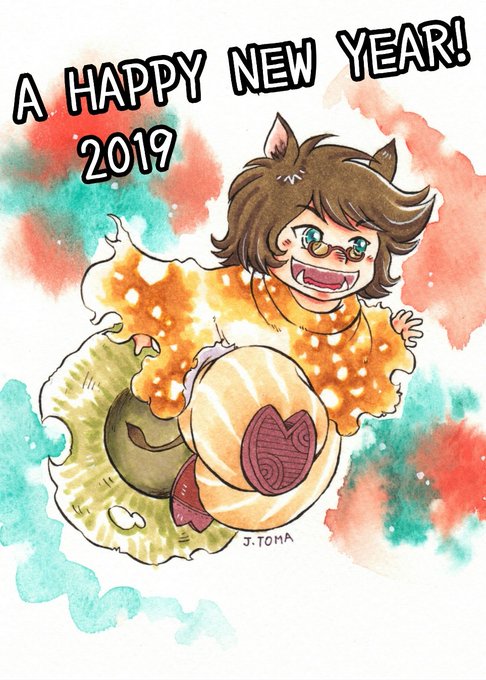 過去の年賀状から擬人化干支男子巳→酉(アヒル&ミミズク)→戌(犬のおまわりさん)→亥です🌟