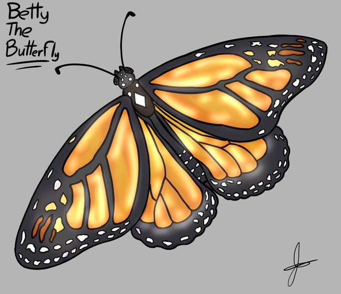Betty is the main character in a little story I wrote for a school task, this is what she looks like, she is a Monarch butterfly with a perfect diamond on her back. She also has larger wings then most of her kind :3 Drew her using only my fingers on my tiny phone