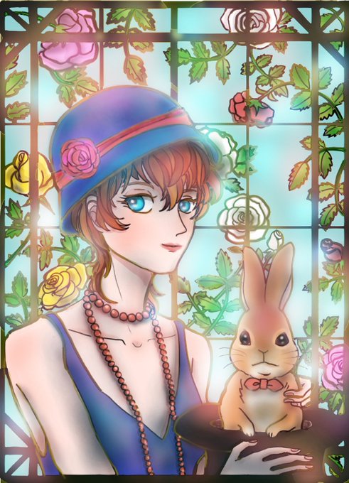 #帽子#薔薇#うさぎ#ルー#美人先生#アール・デコ風 お題に合わせて。どう描くかが、明確に決められず、気の向くままに。