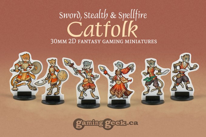 @EwylanaR A #tabaxi D&D character #illustration, a set of Catfolk card stock minis, and a tabaxi mini #commission. 🙂