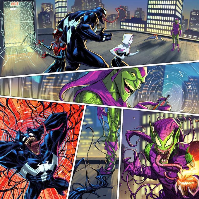 A few more of the pages I did for @FFGames Marvel Champions Expansion "Sinister Motives." Had so much fun drawing all the Spidey villains along with Gwen and Miles. Loved getting to do all my own colors as well. :D #marvelchampions #milesmorales #spidergwen #venom #spiderman