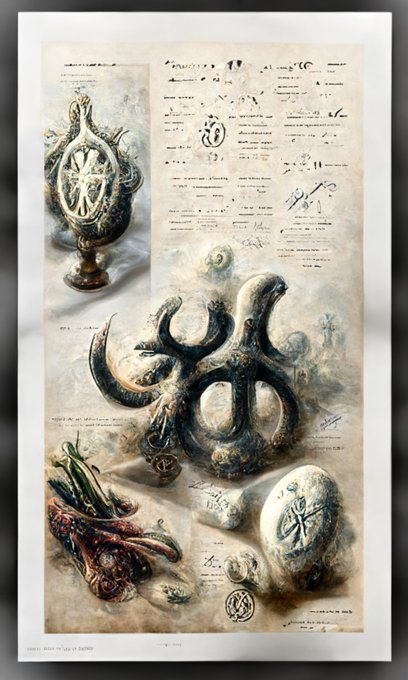 full page antique lithograph of eldritch symbols, White background, art print, clean brush stroke, realistic highly detailed, 8k post-processing highly detailed, rendered by octane engine, esty, --w 320 --h 512 —q 5 #midjourney