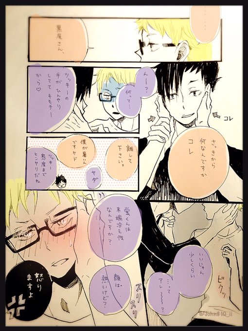 最近夏が近づいて暑いよね… ツッキーはきっと低体温。 お題【体温】 #クロ月版ワンドロワンライ 月島:(この人絶対わざとやってる💢)