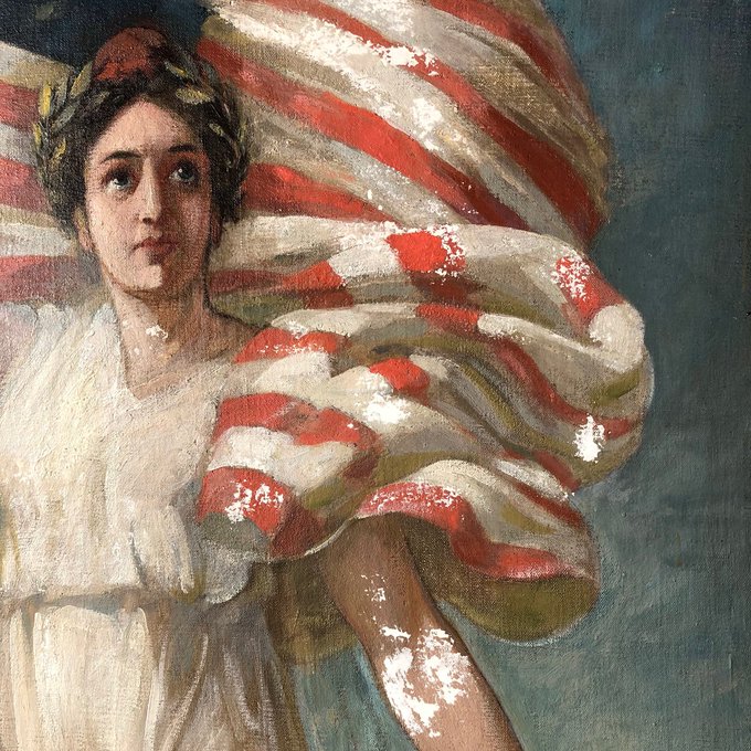 A detail of the #mural titled "Liberty" before #conservation. Previous interventions allowed for the artwork to be mishandled & the previous cleaning caused paint loss & exposed canvas.