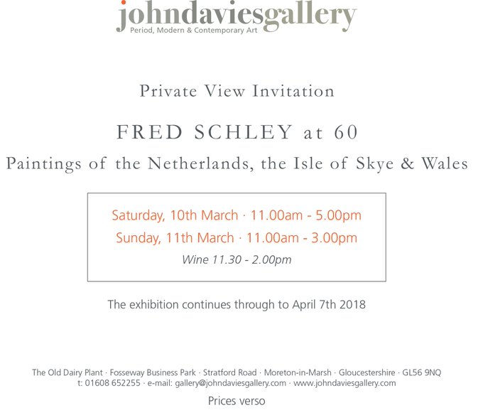 Join us at our private view here at John Davies Gallery as we show over fifty paintings by renowned Dutch artist Fred Schley 'Fred Schley at 60, Paintings of the Netherlands, Isle of Skye & Wales'.