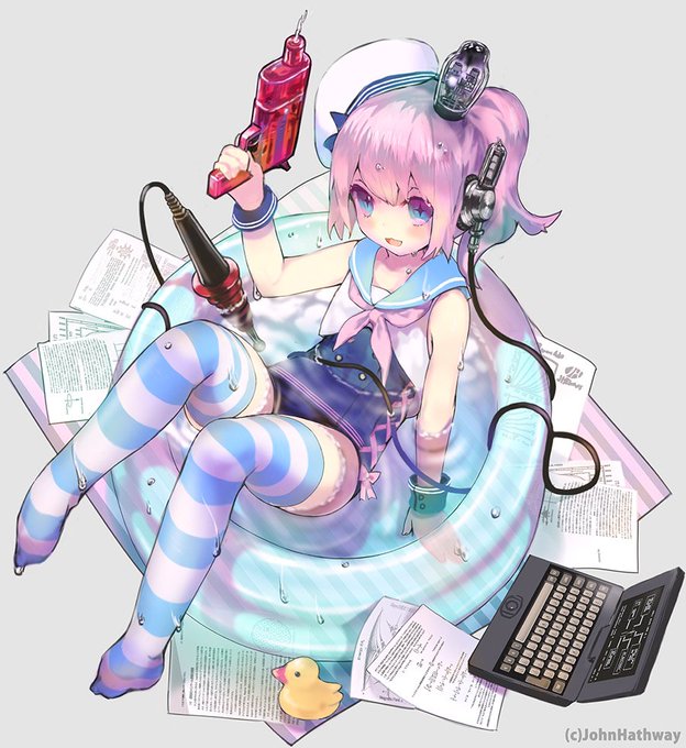 【キャラクター絵】先週描いた水着のフェルミ。赤いのは高電圧プローブ(春月電子で売ってる)。アプリ用絵→@shinkukandolls #JH科学 #JohnHathway #真空管ドールズ