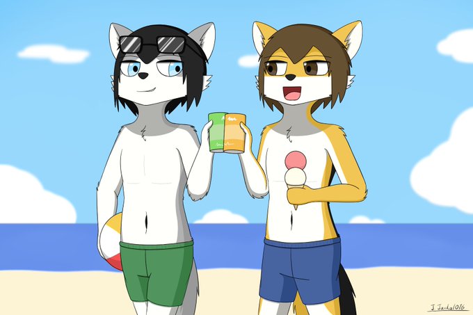 親友とビーチ #イラスト #オリジナルキャラ #ケモノ
