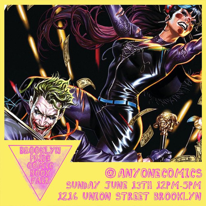 Get ready for Sunday June 13th BROOKLYN PRIDE COMIC BOOK FAIR! Joining us from @DCComics the wonderful @DipsOff writer of Punchline and a story in DC Pride anthology that is out today! @AnyoneComics 12pm-5pm! #bpcbf #brooklynpride