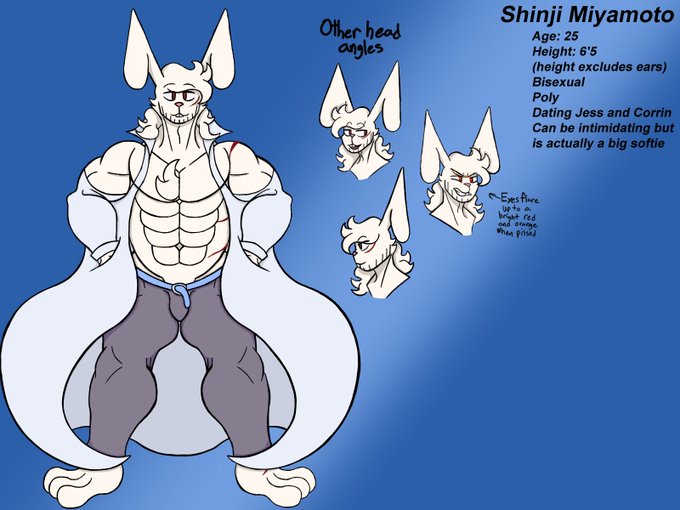 i know this is gonna sound crazy, but shinji was originally created as a minor sidekick character to this fox dude, he wasn't even buff when i had originally made his first concept drawing