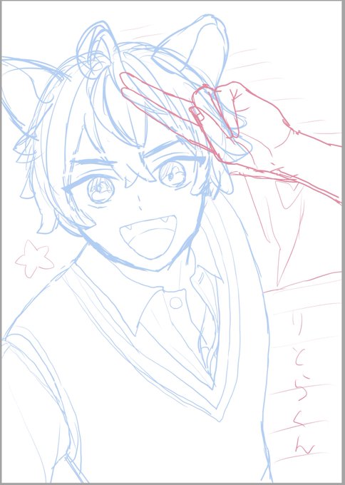 小5の友達のリクエストで、すとぷりという作品の『りとら』というキャラを描いてみた。 ラフ、ペン入れもついでに載せちゃうw 商業キャラを描くのは勉強になるなぁ。