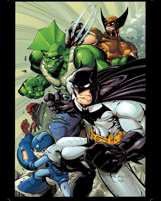 4 more Batman pieces for #BatmanDay - including an oldie from 2006 where I teamed him up with Savage Dragon, Hellboy, Wolverine and megaman!