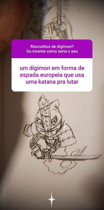 Mais uma ideia de rascunho! Dessa vez de digimon: Digimon espada europeia que usa katana pra lutar! Talvez eu tenha roubado um pouco mas achei irado, o resultado final!